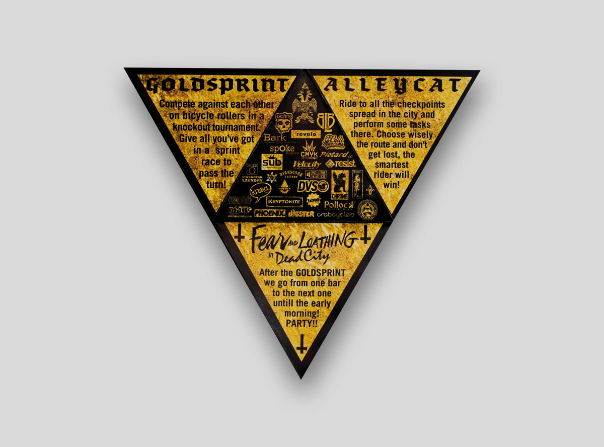 Branding, design, printing, print finishing, event management and event direction for the first local Alleycat-Race, including a Goldsprint Race and a party night.